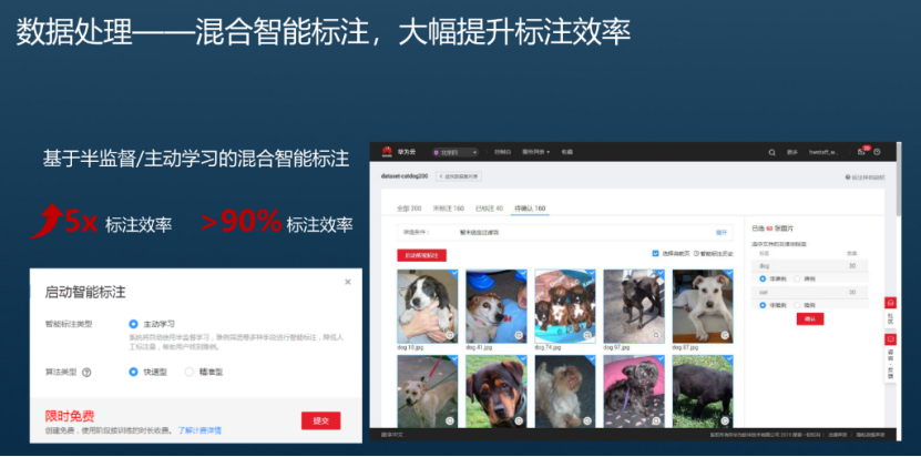 除了人工标注外,ModelArts还提供了智能标注功能,快速完成数据标注,为您节省70%以上的标注时间。智能标注是指基于当前标注阶段的标签及图片学习训练,选中系统中已有的模型进行智能标注,快速完成剩余图片的标注操作。