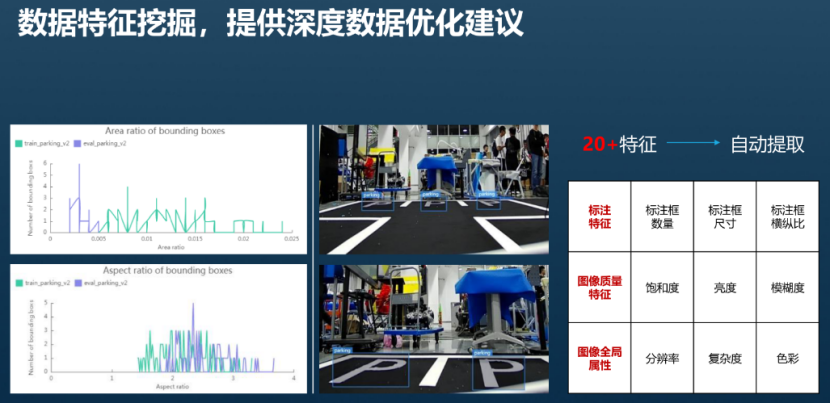 基于图片或目标框对图片的各项特征,如模糊度、亮度进行分析,并绘制可视化曲线,帮助处理数据集。还可以选择数据集的多个版本,查看其可视化曲线,进行对比分析。目前只有“图片”的数据集,且版本标注类型为“物体检测”和“图像分类”的数据集版本支持数据特征分析。“图像分类”支持分析指标有:“分辨率”、“图片高宽比”、“图片亮度”、“图片饱和度”、“清晰度”和“图像色彩的丰富程度”。“物体检测”支持所有的分析指标。