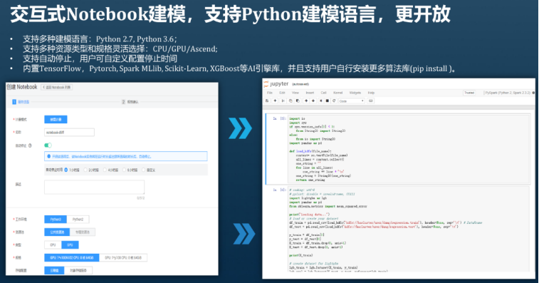ModelArts支持多种开发方式,可以使用交互式Notebook建模,支持多种开发语言,在训练模型时可以通过ModelArts调用GPU/CPU等多种训练资源,减少模型训练过程中对本地资源的要求,同时ModelArts支持多种算法开发框架。ModelArts提供导向配置式训练,方便初学者熟悉开发过程。
