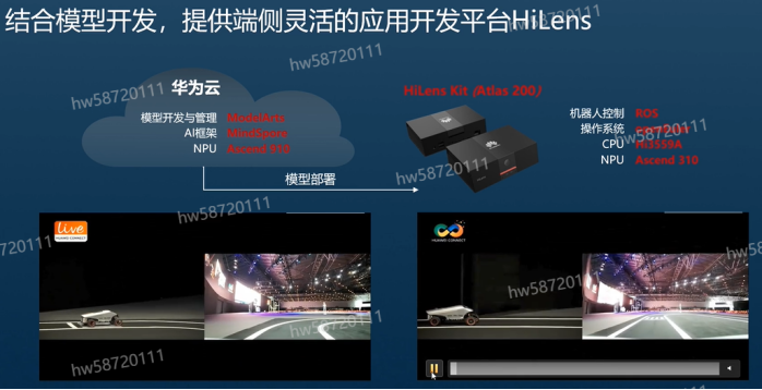 该案例是华为和上海交通大学联合举办的无人车大赛比赛场景,小车上搭载HiLens,通过华为云ModelArts进行模型开发,然后将开发好的模型部署到HiLens上面,HiLens搭载欧拉操作系统,CPU为Hi3559A,同时搭载昇腾310 AI芯片。