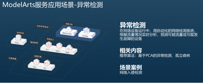 ModelArts主要有以下的服务应用场景:图像识别、视频分析、语音识别、异常检测。