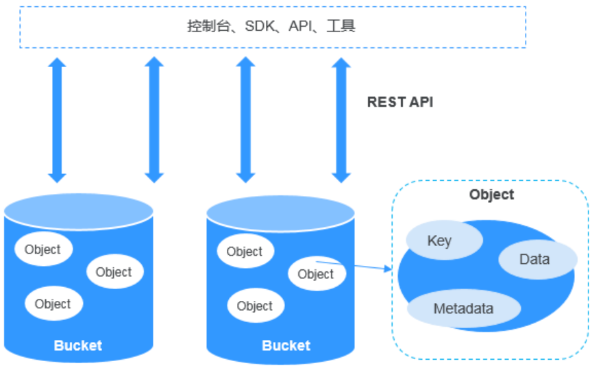 对象存储服务OBS是一个基于对象的海量存储服务,为客户提供海量、安全、高可靠、低成本的数据存储能力。对象存储服务OBS的基本组成是桶和对象。桶是OBS中存储对象的容器,每个桶都有自己的存储类别、访问权限、所属区域等属性,用户在互联网上通过桶的访问域名来定位桶。对象是OBS中数据存储的基本单位。对ModelArts来说,OBS服务是一个数据存储中心,因为ModelArts本身目前没有数据存储的功能。AI 开发过程中的输入数据、输出数据、中间缓存数据都可以在OBS桶中进行存储、读取。因此,在使用ModelArts之前您需要创建一个OBS桶,然后在OBS桶中创建文件夹用于存放数据。