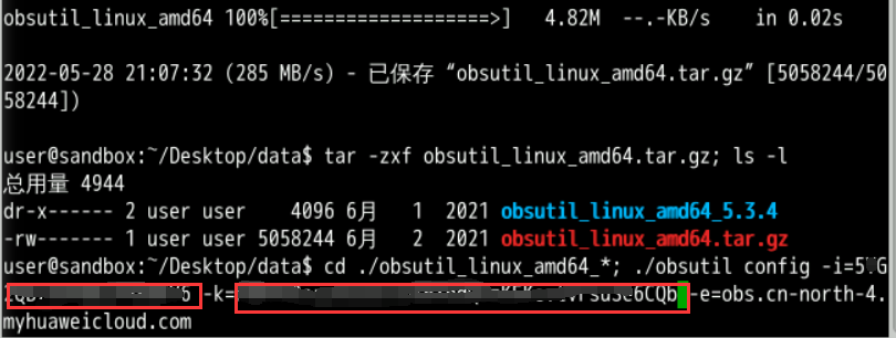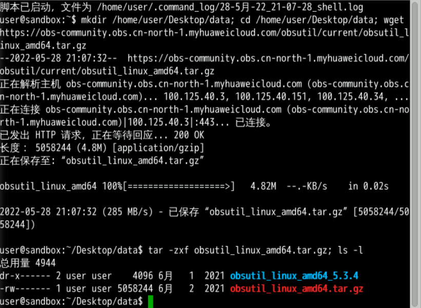 mkdir /home/user/Desktop/data; cd /home/user/Desktop/data; wget https://obs-community.obs.cn-north-1.myhuaweicloud.com/obsutil/current/obsutil_linux_amd64.tar.gz