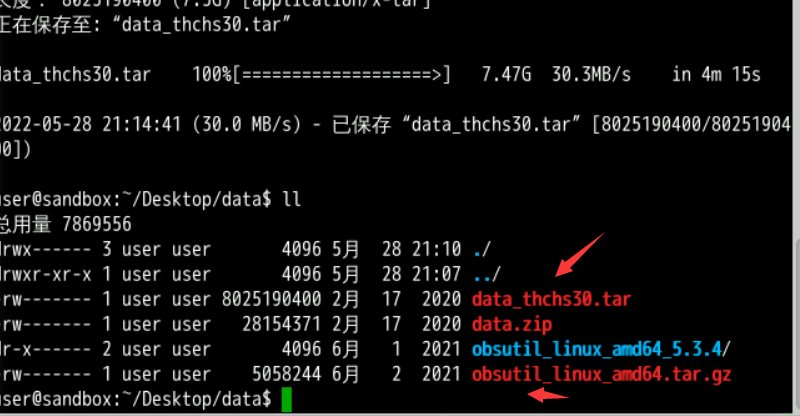 执行如下指令下载实验相关资料:注:由于语音资料较大(7个多g),需要耐心等待