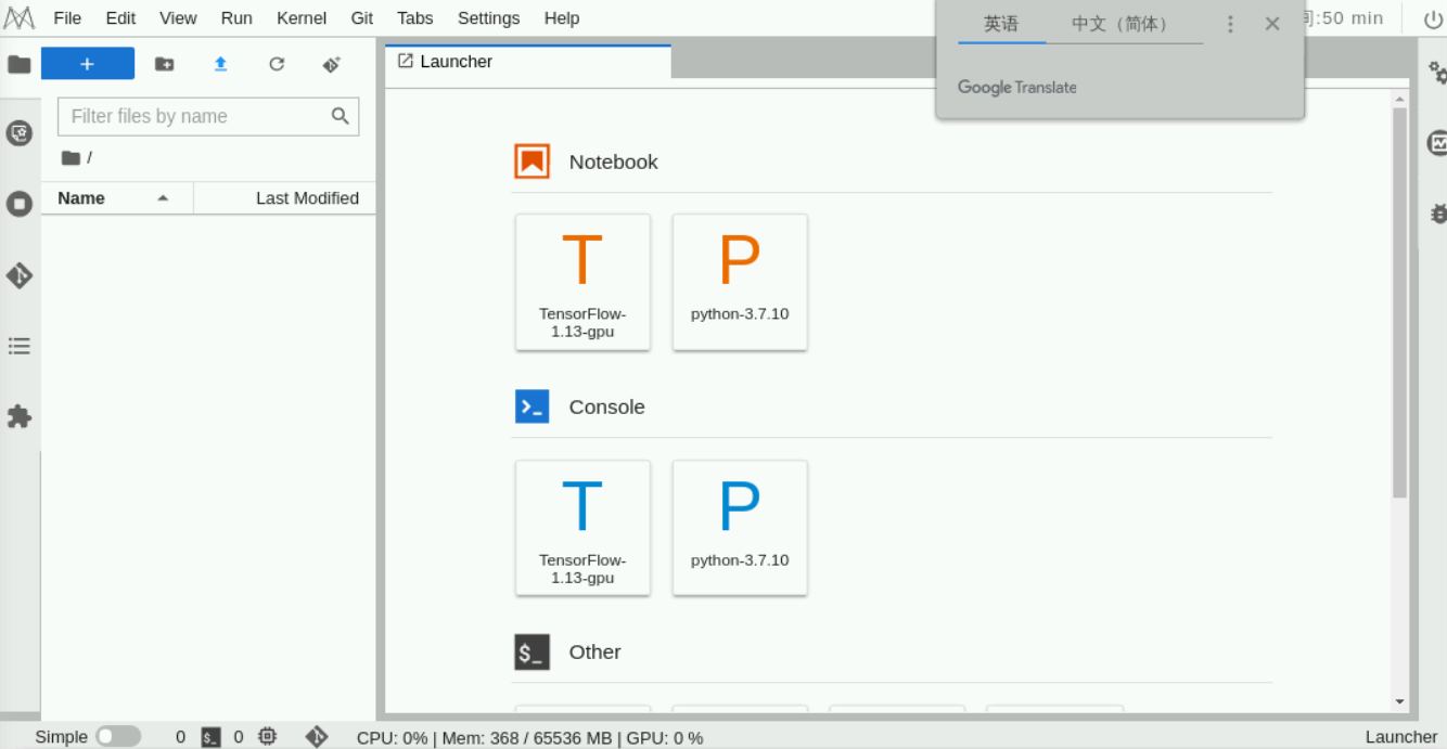 创建成功,返回NoteBook列表,等待状态变为“运行中”【约等待3分钟】,点击“打开”,进入NoteBook详情页。在页面中选择“TensorFlow-1.13.1”,如下图所示: