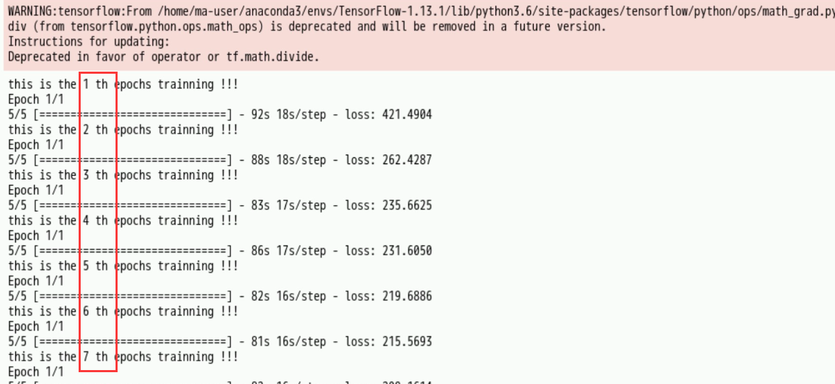 执行成功输出内容如下图【大约10分钟执行完成,如果需要更好效果请将参数epochs调整为15】: