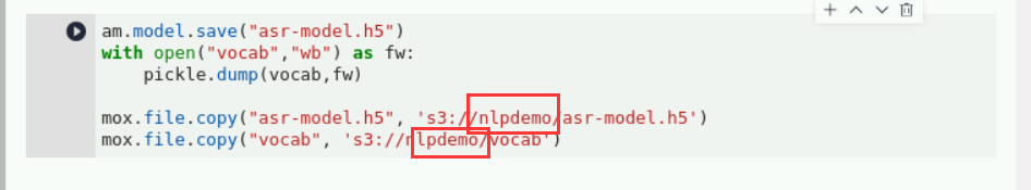 继续输入如下代码,点击“run”运行后,保存模型到OBS桶中,方便其他notebook使用:操作说明:用自己创建的OBS桶名代替“OBS”字符,我的是nlpdemo
