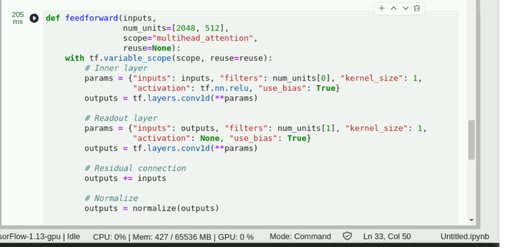 self.outputs = feedforward(self.enc, num_units=[4*self.hidden_units, self.hidden_units])