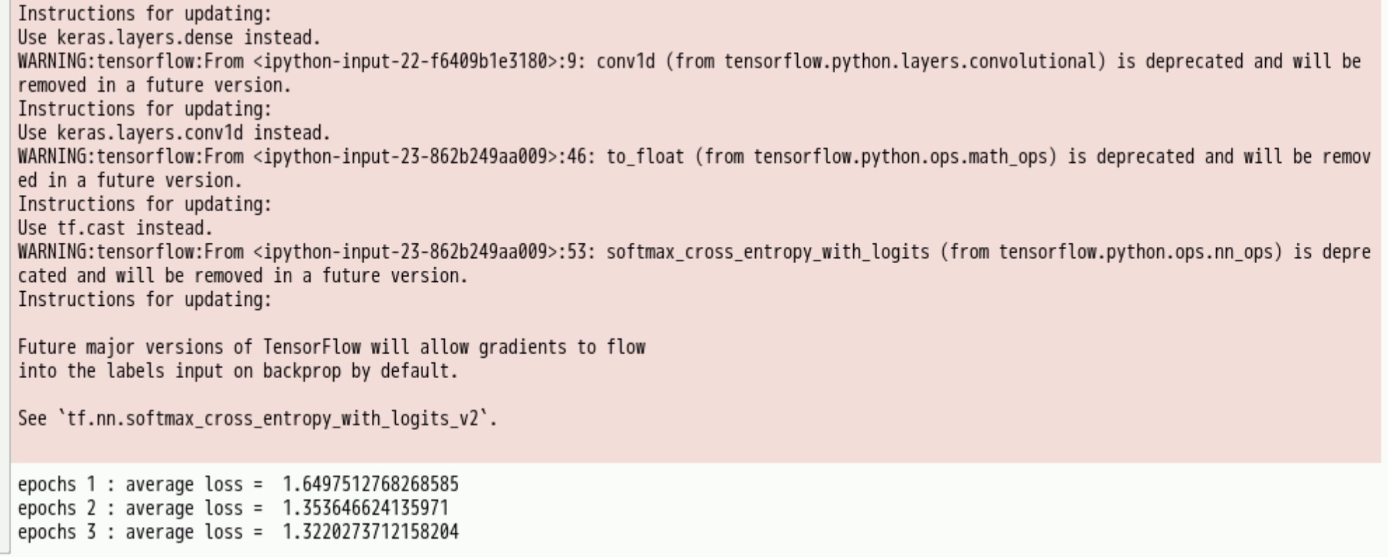 print('epochs', k+1, ': average loss = ', total_loss/batch_num)