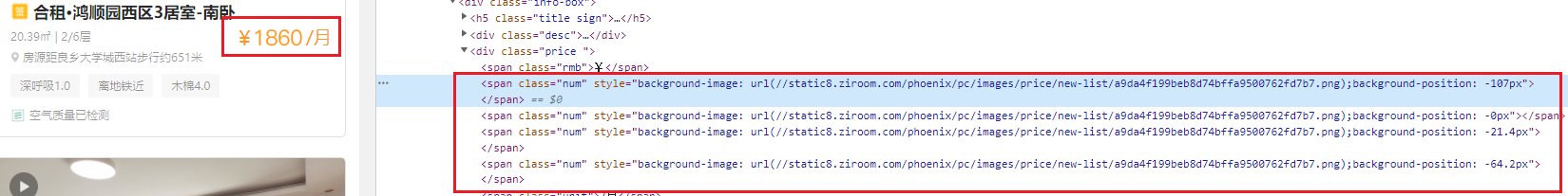 我们又碰到了一个字体反爬的站点,自如。该站点的字体反爬不是用字体文件实现的,而是基于图片+CSS,具体如下图所示。