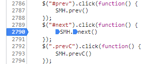 通过开发者工具的 DOM 事件绑定器,找到下一页按钮点击事件,然后在下述位置添加断点。