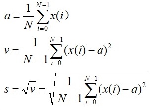 由信号序列x(i),i = 0, 1, …, N-1估计其均值a与方差v,以及标准差s: