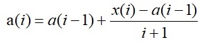 可用递推方法进行均值计算:假设i时刻的均值为a(i),且a(-1)=0,则i时刻的均值可由i-1时刻的均值算得: