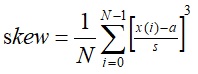 设随机信号序列x(i), i=0, 1, 2, …, N-1,其平均值为a,标准差为s,那么偏斜度(skew)计算为