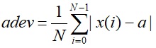 设随机信号序列x(i), i=0, 1, 2, …, N-1,其平均值为a,那么平均偏差为adev: