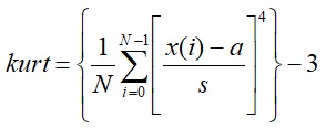 设随机信号序列x(i), i=0, 1, 2, …, N-1,其平均值为a,标准差为s,那么峰度(kurt)计算为