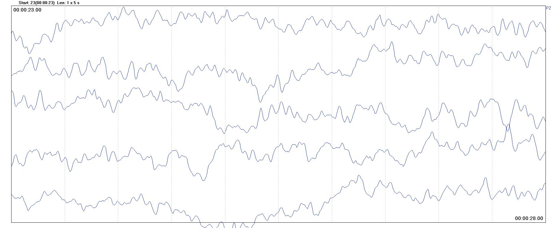 例1:原始信号,脑电,采样率1000Hz,总长度5s(每行1s,总共5行),计算这段信号的特征参数。