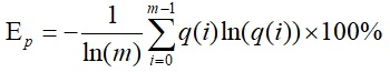 频谱熵比(Ep)是反映功率谱密度曲线扁平程度的参数。设随机信号序列{x(i),i=0, 1, 2, …, N-1}的功率谱为p(i),i = 0, 1, …, m-1,对应的频率范围为[f1,f2],q(i)是p(i)的归一化功率谱,把q(i)看成概率密度分布,那么频谱熵比(Ep)计算如下: