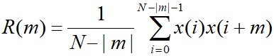 式中假设x(i)的均值为零,如果均值不为零,则应先去掉均值后再做上述运算。在上式有偏估计中当m接近N时,估计R(m)接近于零。