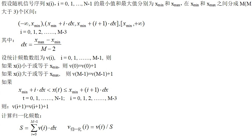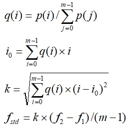 设随机信号序列{x(i),i=0, 1, 2, …, N-1}的功率谱为p(i),i = 0, 1, …, m-1,对应的频率范围为[f1,f2]。q(i)是p(i)的归一化功率谱,那么频率标准差fstd为: