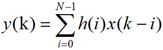 设有两个有限长序列h(i)和x(i),h(i)的长度为N,x(i)的长度为M,则它们的线性卷积为: