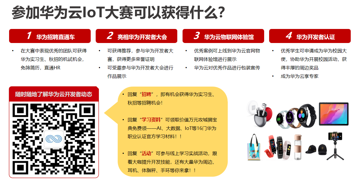 点击此处进入 loT 开发者专区 :获取物联网开发所需要的开发者平台、API参考、开发指南、代码样例、开发工具和视频教程等各种资源,助力开发者使用华为云IoT平台完成作品。