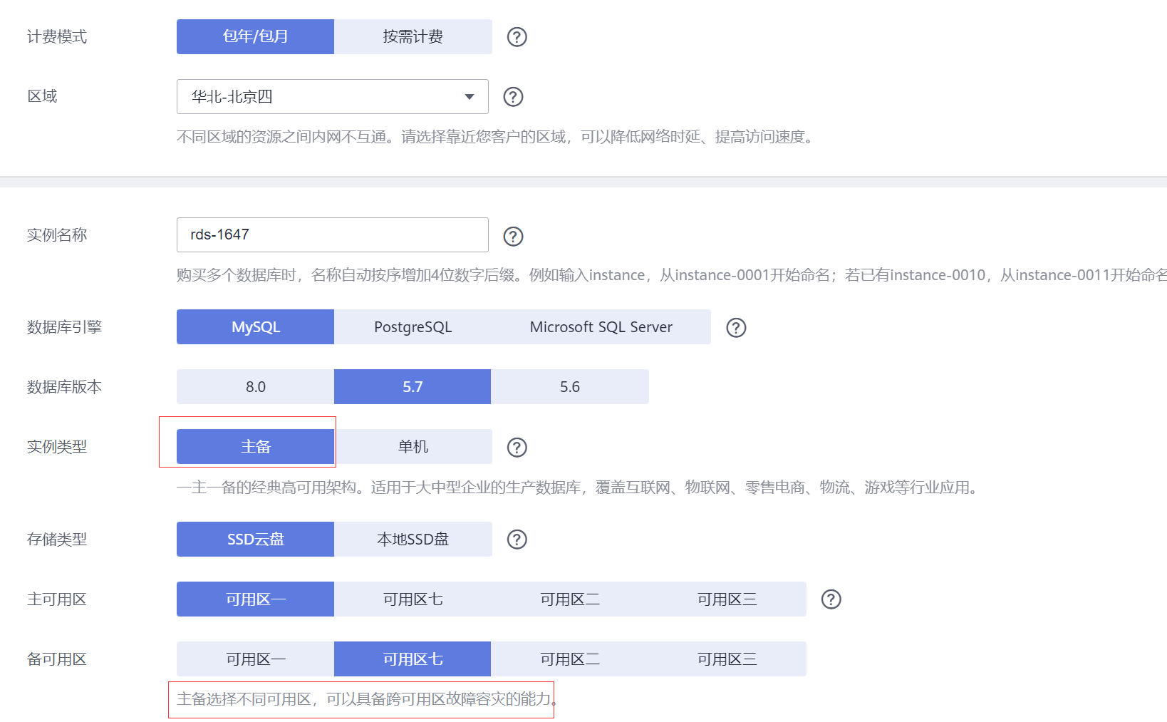 在选择数据库的时候,第一个要考虑的是安全性,毕竟,数据是我们整个云平台最重要的部分,在合理的费用范围内,提供尽可能高的安全性,是我们非常关注的特性,华为云数据库在这上面的表现可圈可点。以mysql为例,华为云数据库支持主备数据库,并且,更让人放心的是,主备可以选择不同的可用区,这样,两个可用区同时出故障的概率太低了,极大的提高了数据库的可用性。