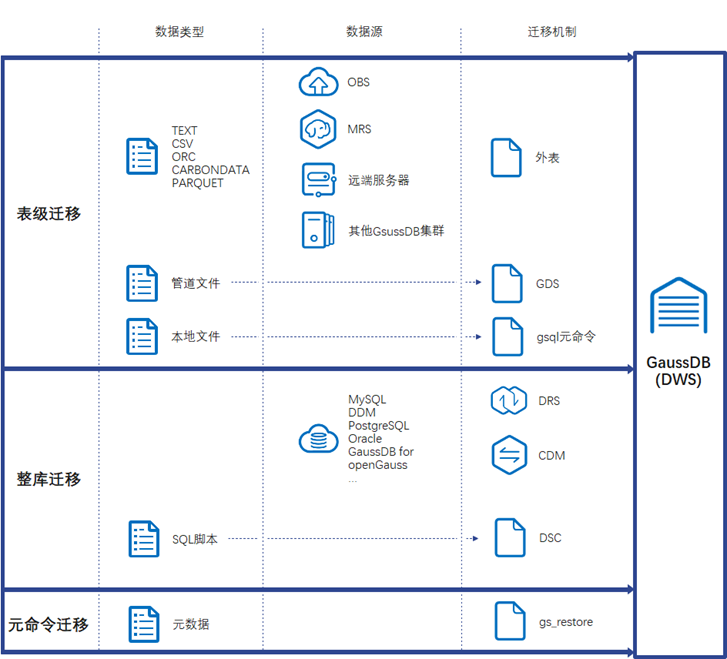 GaussDB(DWS) 提供配套的迁移工具,可支持MySQL、Oracle和Teradata的SQL脚本迁移到GaussDB(DWS) 。