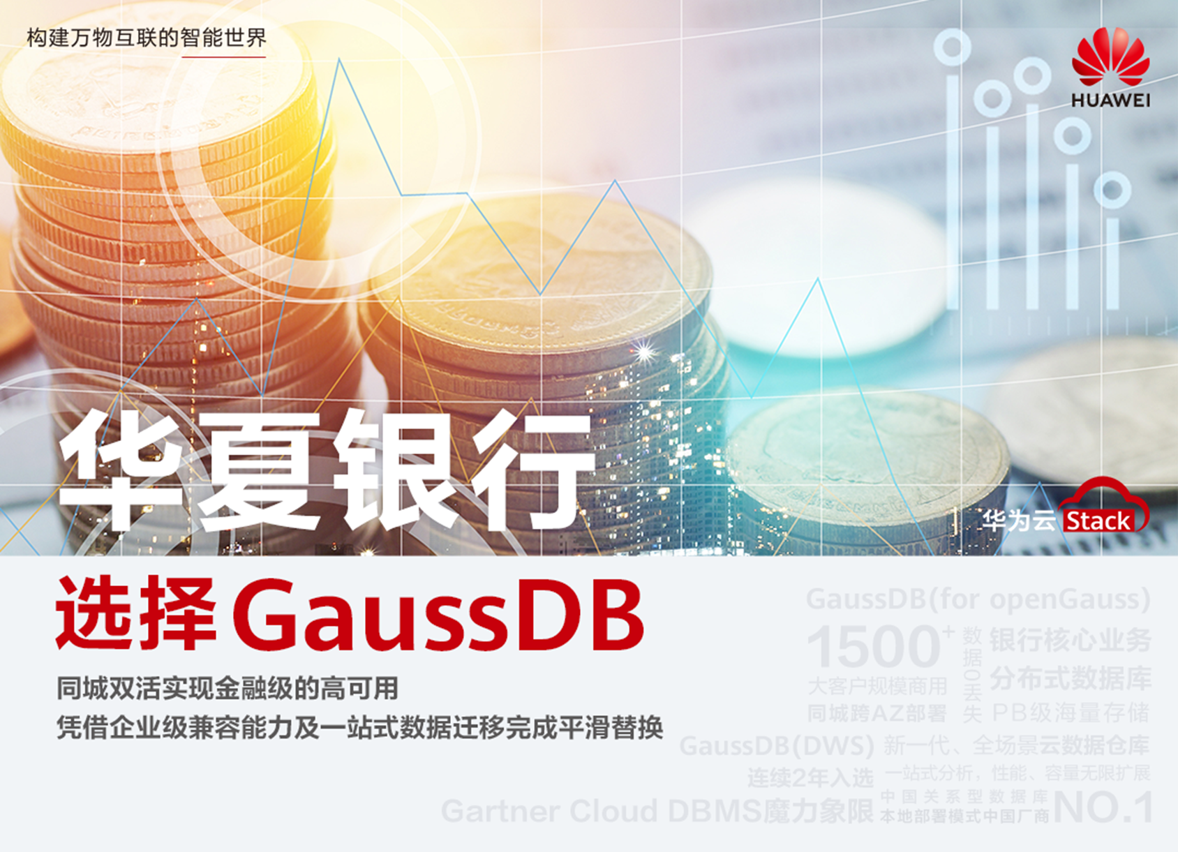 通过采用同城双活技术,实现金融级的高可用,保证数据0丢失;凭借GaussDB强大的企业级兼容能力以及一站式数据迁移解决方案,完成平滑替换。