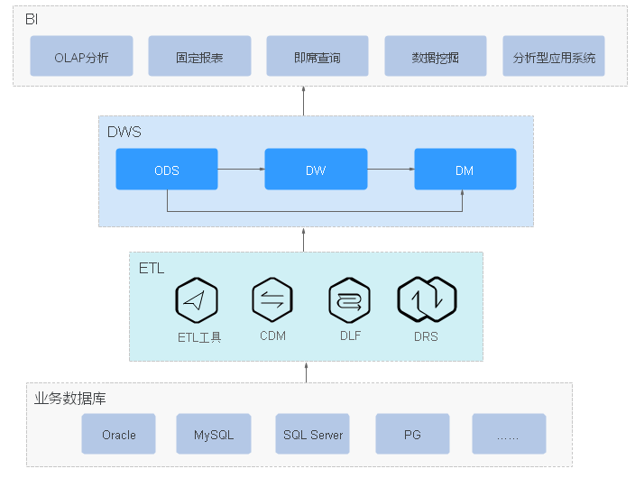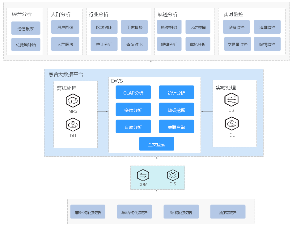 - 数据仓库服务 GaussDB(DWS) 是一种基于华为云基础架构和平台的在线数据处理数据库,提供即开即用、可扩展且完全托管的分析型数据库服务。