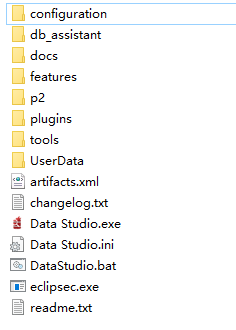 - 解压下载的客户端软件包(32 位或 64 位)到需要安装的路径,打开安装目录,双击 Data Studio,启动 Data Studio 客户端: