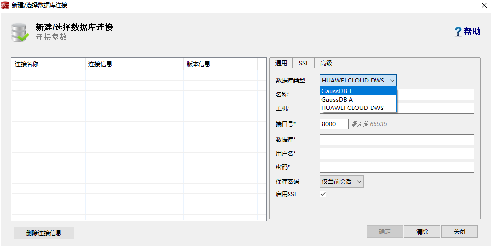 - 在弹出的“新建/选择数据库连接”页面中,输入连接参数: