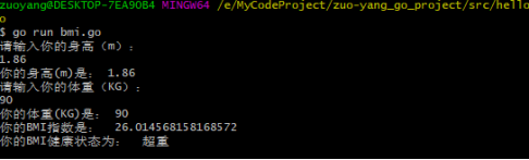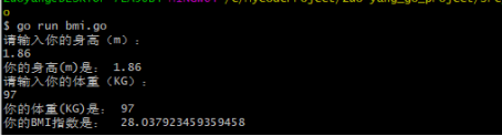 fmt.Println("你的BMI指数是: ",bmi_num) // 控制台输出BMI指数