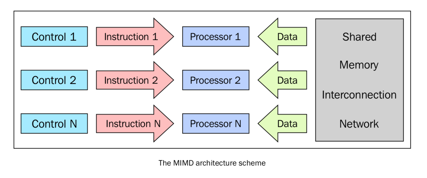 - 多处理器,多数据 (MIMD)