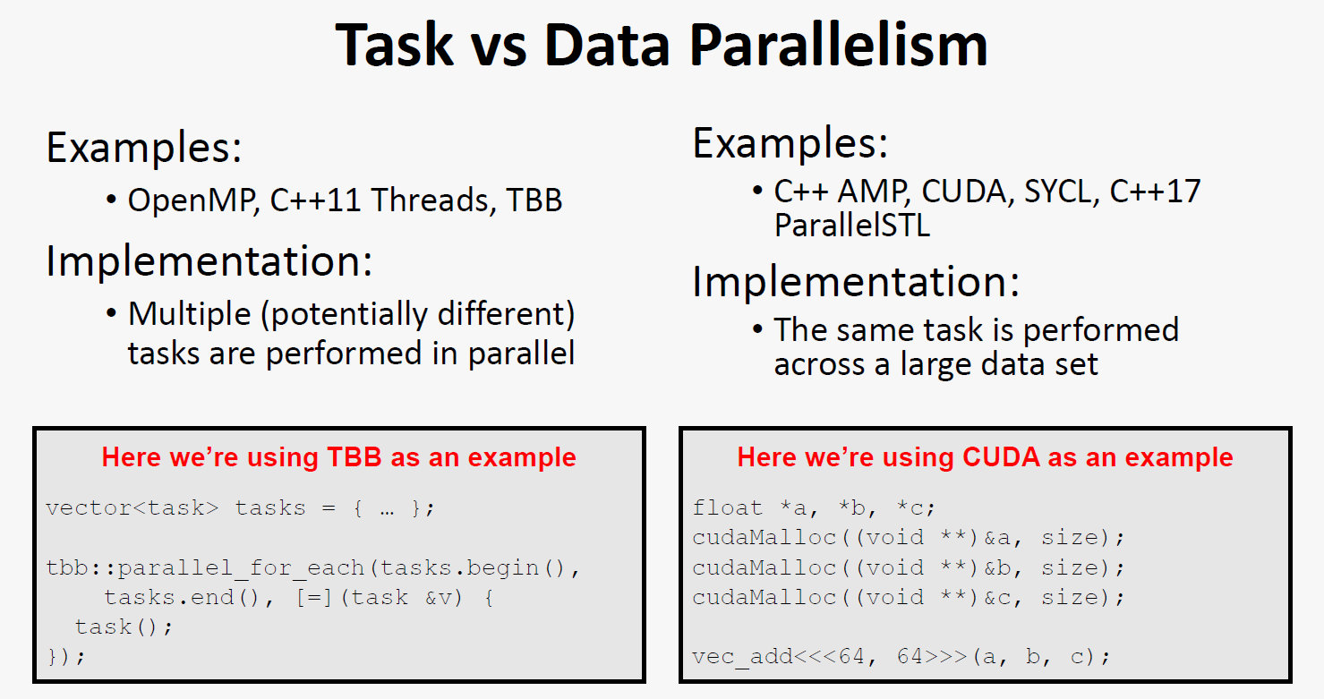 - [小粒度]根据一个并行计算机能够同时执行的指令与处理数据的多少 可以把并行计算机分为 SIMD Single-Instruction Multiple-Data 单指令多数据并行计算机和MIMD Multiple-Instruction Multiple-Data 多指令多数据并行计算机