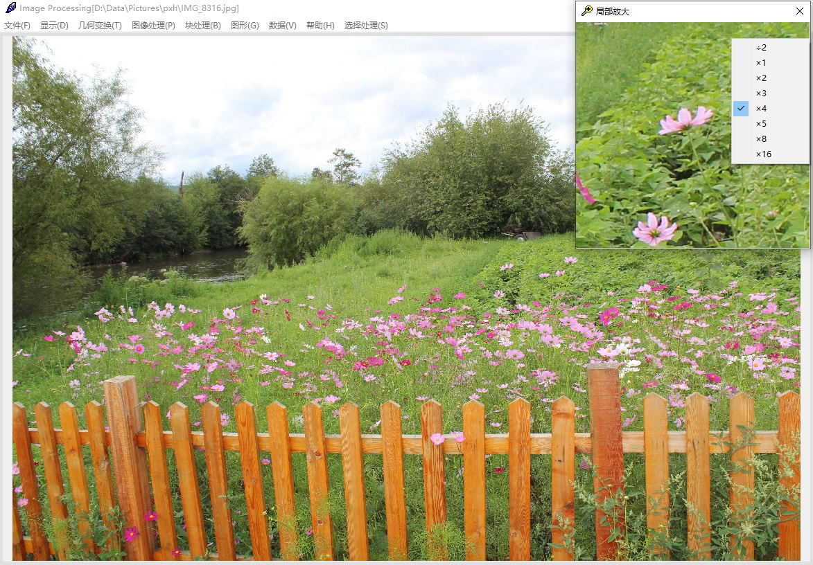 研制了一种图像处理软件,其中应用了上述图像处理算法,并形成了具有一定特色的图像处理软件系统,具有图像文件打开与保存、图像显示、图像浏览、图像处理、图像中热点标记、图形绘制、动画制作、等丰富的功能。