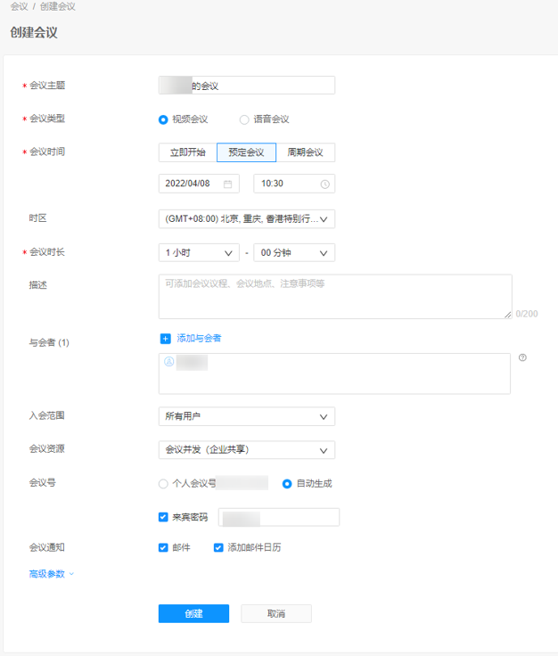 更多创建会议方式请参见桌面客户端创建会议、移动客户端创建会议、Web端创建会议。