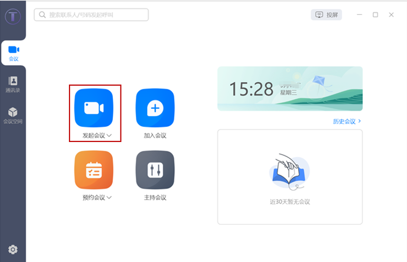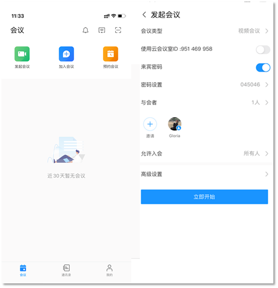 在“发起会议”界面,点击“立即开始”即可马上召开会议。