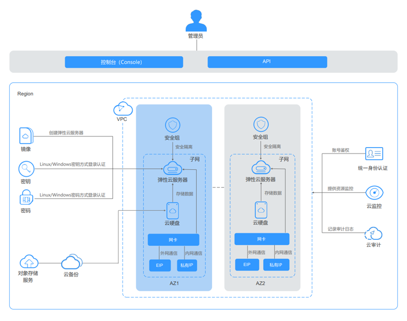 - 通过云硬盘服务实现数据存储,并通过云硬盘备份服务实现数据的备份和恢复。