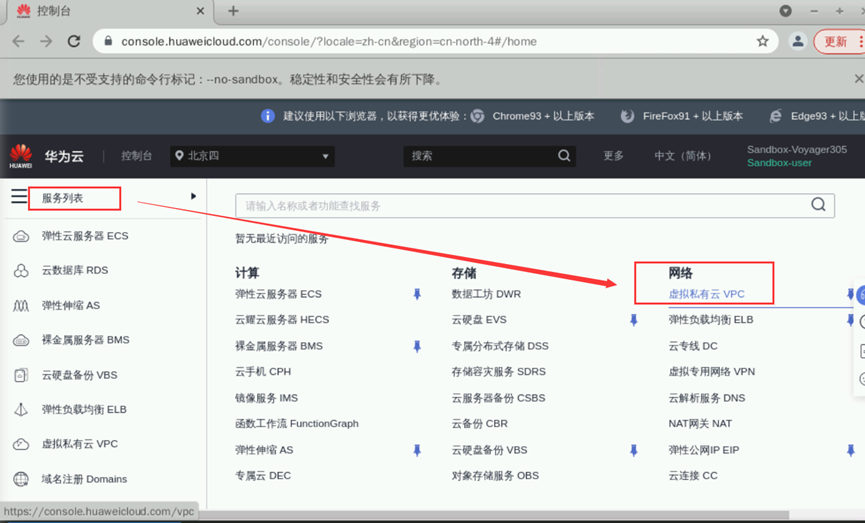 进入【实验操作桌面】,打开Chrome浏览器,首次可自动登录并进入华为云控制台页面。