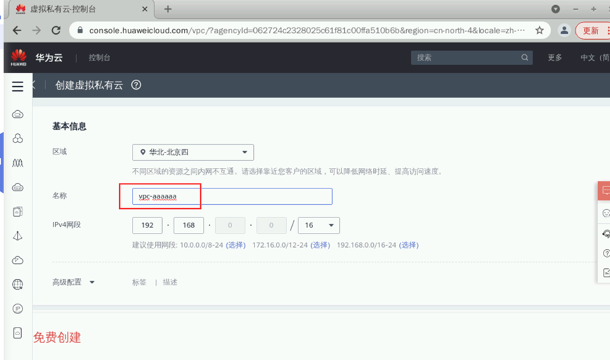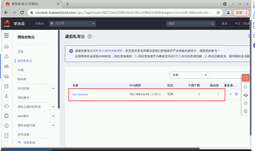 ① 虚拟私有云:选择步骤2.1创建的虚拟私有云VPC,