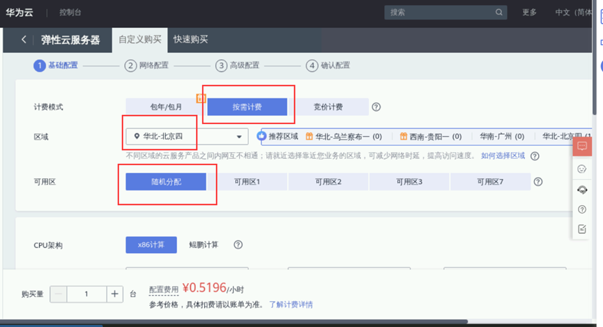 ① 可用区:任选一项,