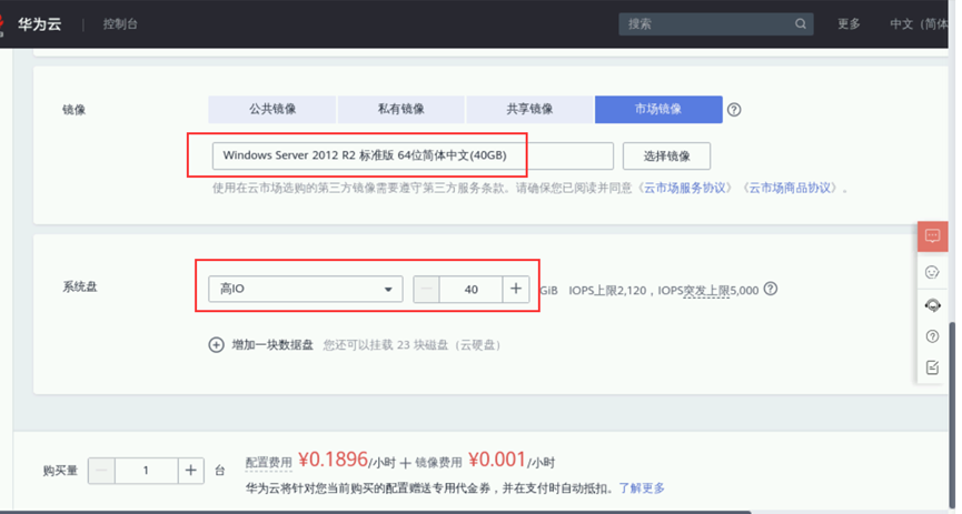 与创建Linux系统弹性云服务器流程一致,创建Windows系统云服务器的区别:
