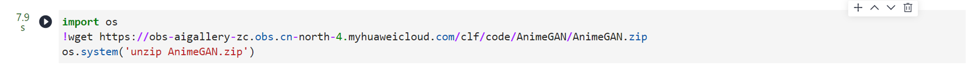 切换到文件夹,此时目录下文件结构如下,ipynb运行路径为 "/home/ma-user/work/ma_share/AnimeGanv2/AnimeGanv2.ipynb"