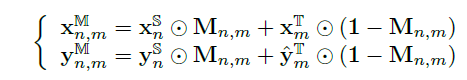 在mean-teacher训练框架下为目标域图像生成伪标签,然后用目标域和源域数据一起训练网络是一种常用的方法,在此基础上,DACS[1]提出用混合域M的训练数据替换来自目标域的训练数据。混合域M的训练数据生成过程:在每次训练迭代中,对带有(真或伪)标签的源图像和目标图像进行采样并裁剪成相同的分辨率。接下来,从源域标签中随机选择一个类子集,并得到一个与图像相同大小的二进制掩码,属于选中类别的位置为1其他为0,再根据此掩码将源域和目标域数据混合在一起。