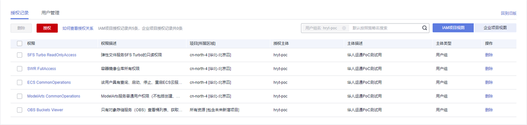 注意:ECS, VPC, SFS的策略部分有重合,需要特别注意是否存在冲突