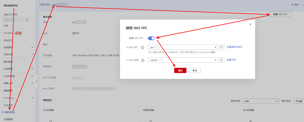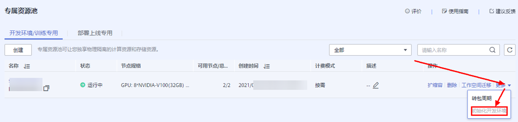 4.ModelArts创建专属资源池。