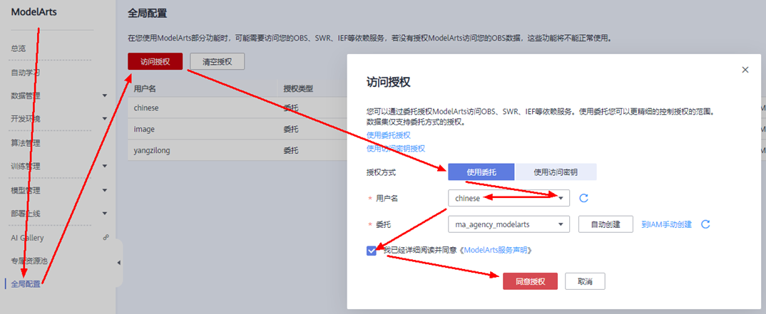 3.ModelArts训练任务有权限创建,开发环境有权限创建。