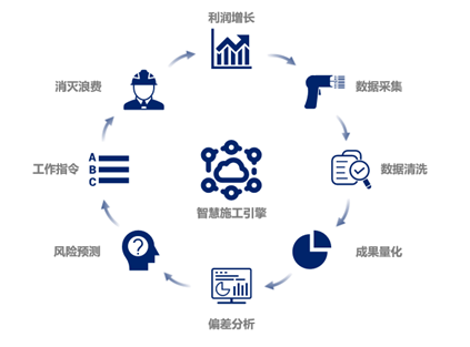 通过量化施工过程的生产数据,与项目启动时建立基线数据进行偏差对比,预测可能导致浪费出现的项目风险,向管理人员发出建议和行动指令,将浪费消灭在发生之前。