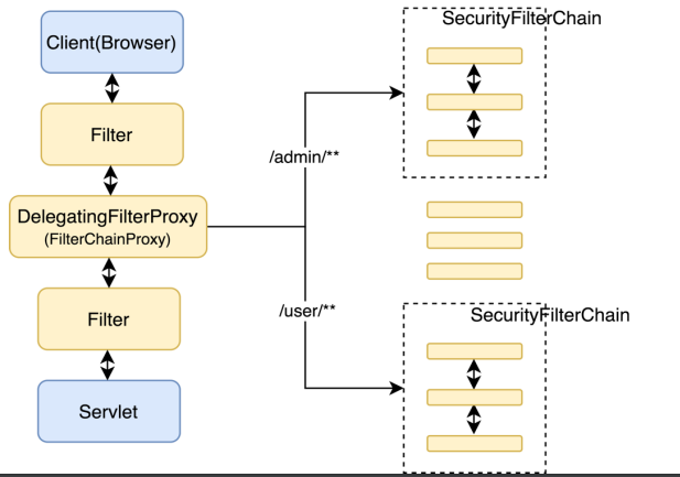 Spring Security是一个安全框架,作为Spring家族的一员,可以简单地认为 Spring Security是放在用户和Spring应用之间的一个安全屏障,每一个web请求都先要经过Spring Security 进行Authenticate和 Authoration验证,其核心就是一组过滤器链。